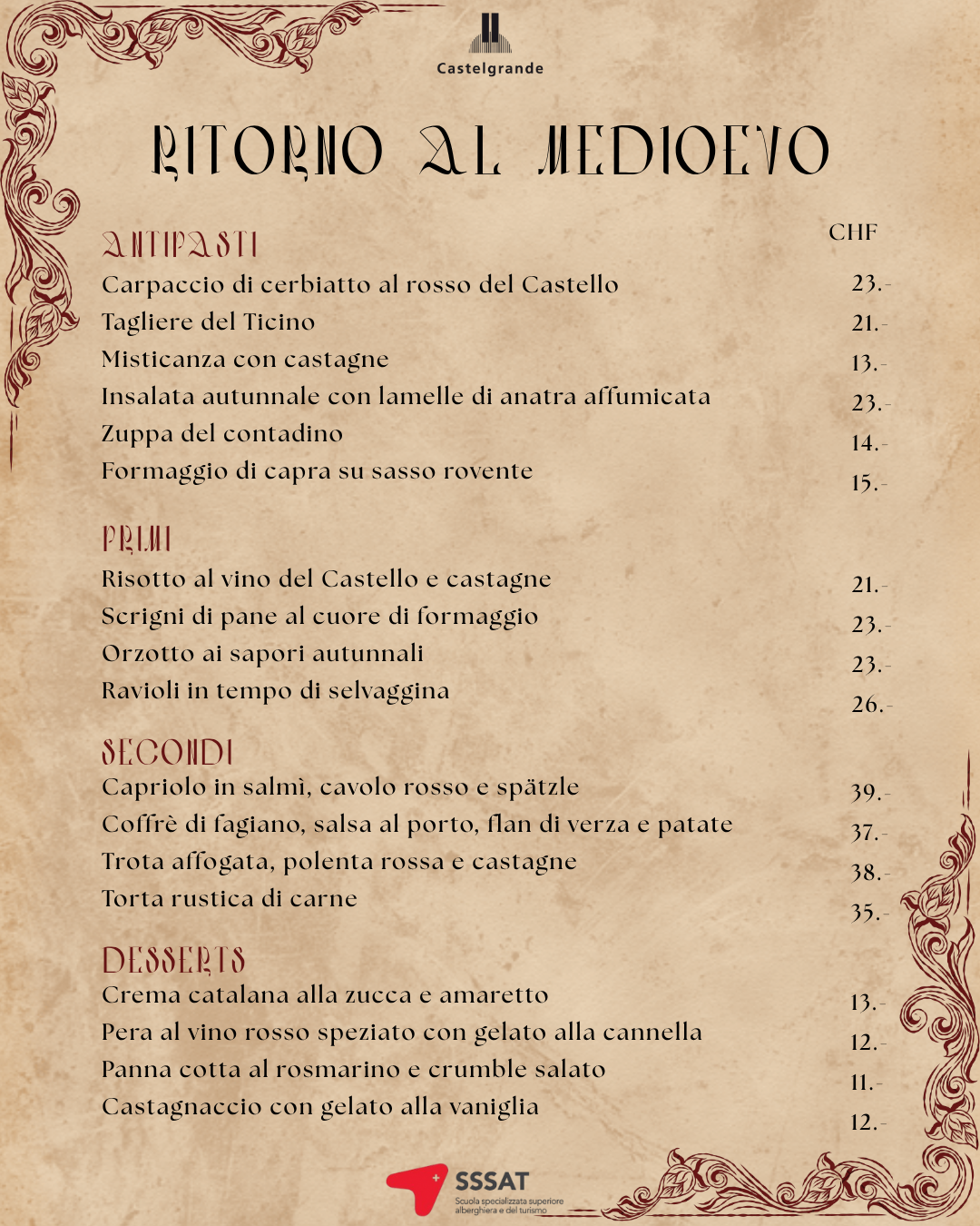 Il menu “Ritorno al Medioevo” del Grotto San Michele da ristorante.castelgrande | Nov 11, 2025 | Grotto San Michele IT, Home IT | 0 commenti