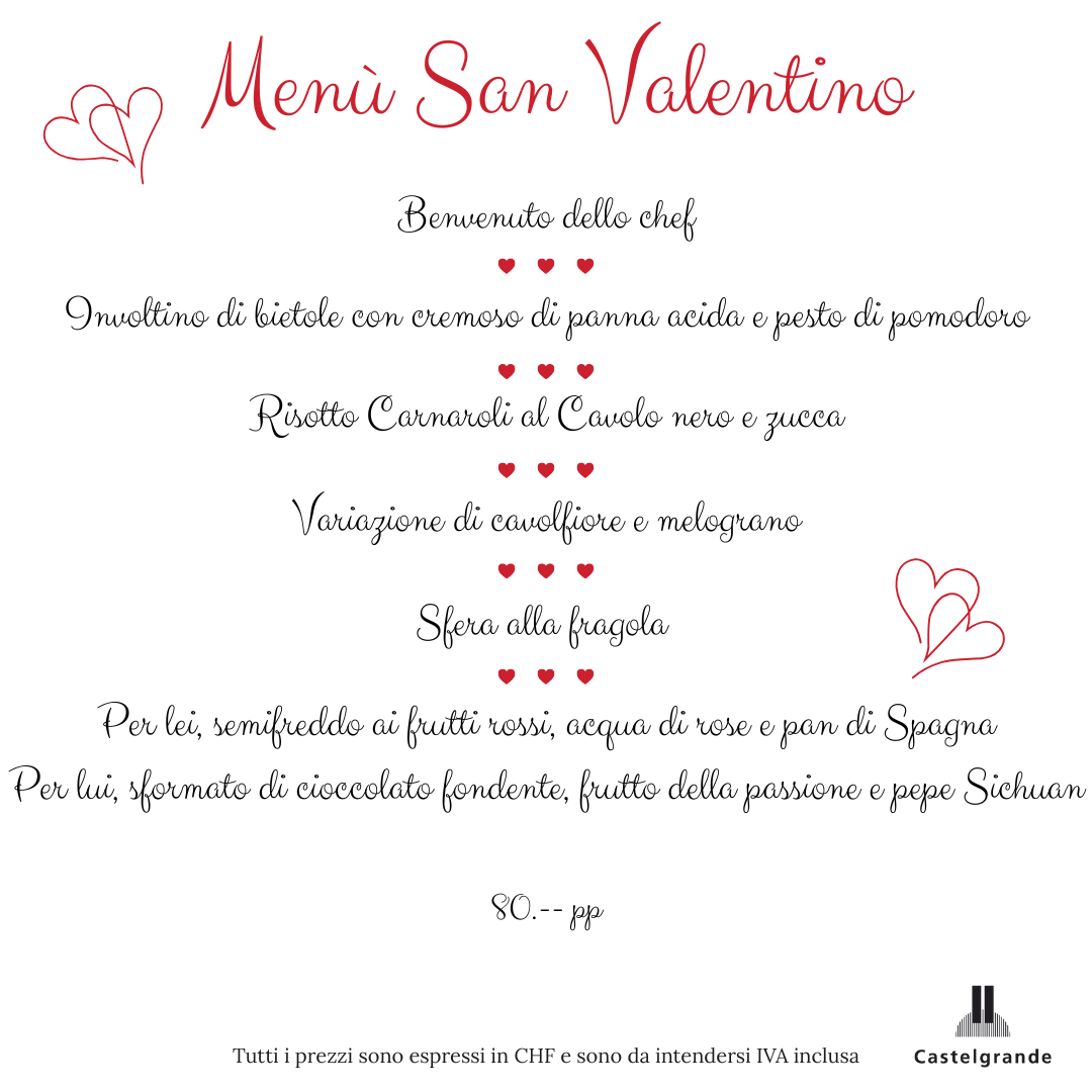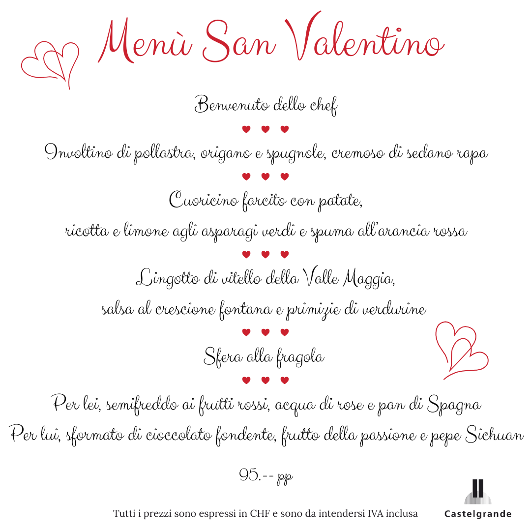 Menù di San Valentino da ristorante.castelgrande | Feb 6, 2026 | Grotto San Michele IT, Home IT | 0 commenti